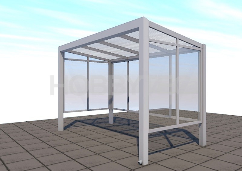 Jako přístřešek pro kuřáky či autobusová zastávka. Tento hliníkový přístřešek v moderním designu najde uplatnění v městském mobiliáři. Poradí s náročným počasím a dalšími vlivy. Jeho standardem je snadná údržba a dlouhá životnost. Nepřitahuje rez, plísně ani mechy.