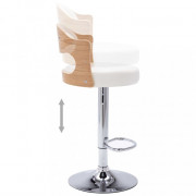 Sedák a opěradlo jsou čalouněné vysoce kvalitní umělou kůží, bude se vám na nich tudíž velmi pohodlně sedět. Rám z ohýbaného dřeva podtrhuje jejich jedinečnou krásu a styl, zatímco podstava z pevného železa jim dodává na odolnosti a prodlužuje jejich životnost. Praktický mechanismus s plynovým pístem umožňuje nastavit si výšku židle dle vašich potřeb. Zabudovaná opěrka nohou vám navíc při sezení poskytne dodatečnou oporu.