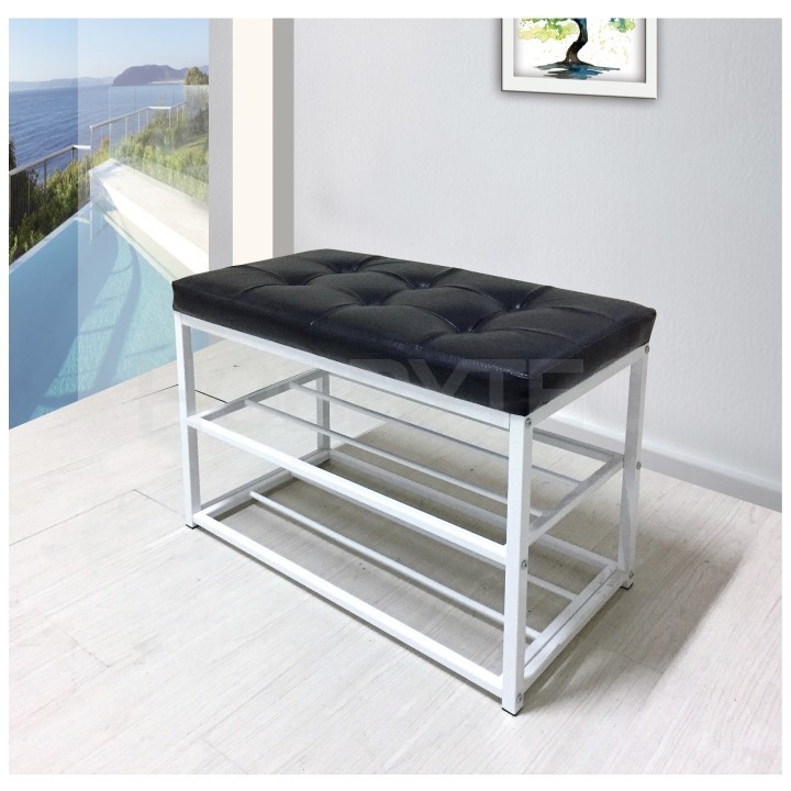 Designová lavice s botníkem LYROS je vyrobená z kvalitního kovu v bílém provedení a čalouněná ekokůží v elegantní černé barvě.