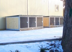 Odstavný box určený pro psy. Rozměry: šířka 2,25 m, hloubka 1,25 m, výška 0,8 m