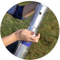 Čim zemní vrut zavrtěl hlouběji, tím bude držet v zemi pevněji. Zemní vrut samozřejmě zavrtává do hloubky dle Vaší potřeby. Následně odjistíte všechny komponenty a vybereme montážní klíč ze zemního vrutu.
