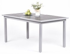 Středně velké či velké sezení umožňuje rozkládací stůl s pevným hliníkovým rámem a deskou z trvanlivého tmavě šedého polywoodu. Speciální mechanismus díky vyklopení usnadňuje rozložení a opětovné složení stolu během pár sekund a bez námahy.