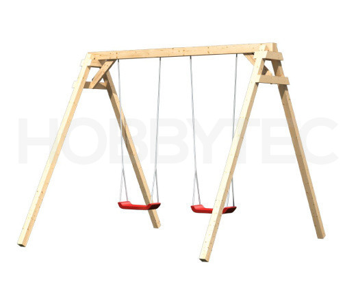Základní konstrukce sloupů z masivního dřeva o tloušťce 6,8 x 6,8 cm je vyrobena z přírodního smrkového dřeva. Také horní příčník je vyroben ze stejného materiálu. Pro větší stabilitu jsou na každé straně sloupku nahoře 2 další zesilující vzpěry. Houpací háky i červená houpací sedačka jsou obsahem balení.