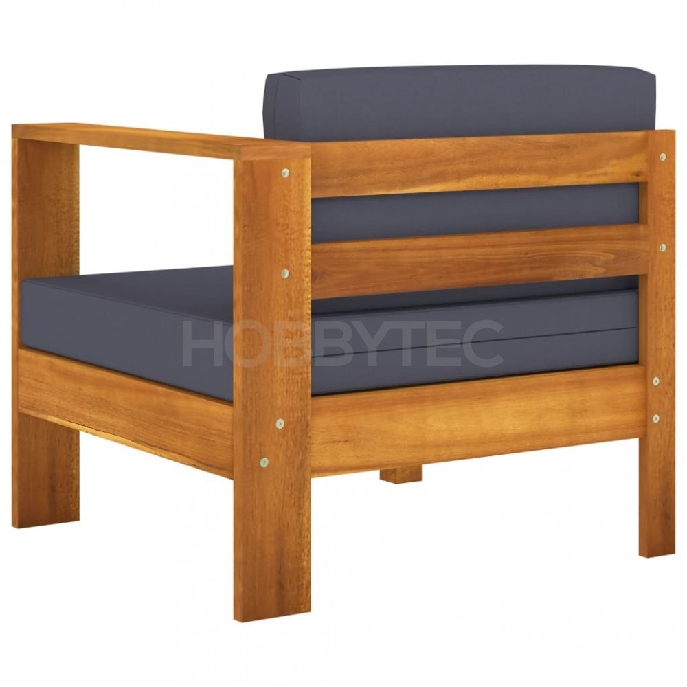 Zahradní pohovka je vyrobená z masivní akácie, tvrdého dřeva s hustou kresbou. Krásně navržená pohovka je stabilní, má dlouhou životnost a atraktivní vzhled. Vynikající řemeslné zpracování a krásná kresba dřeva dávají každému kusu unikátní charakter. Při relaxování můžete použít opěrku na ruku. Hustě polstrované podušky nabízejí optimální pohodlí. Dřevěné pohovky můžete zkombinovat s dalšími kusy nábytku, a vytvořit si tak své vlastní zahradní posezení.