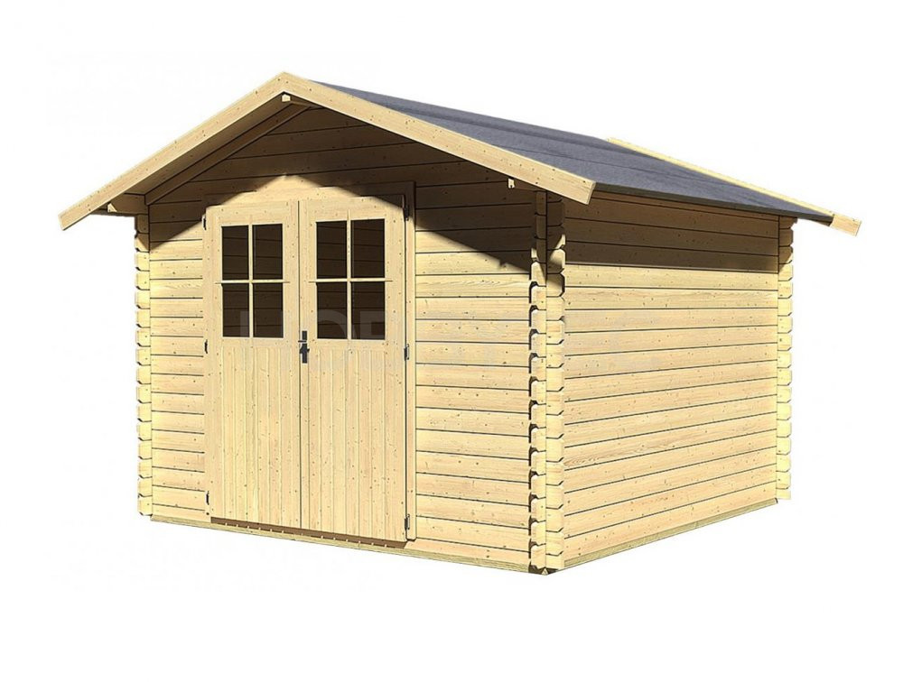Tento model má sedlovou střechu a dvoukřídlé dveře na pantech s oknem v každém křídle. Stavebním materiálem domku jsou profily síly 28 mm perfektně vyfrézované ze severského smrku.