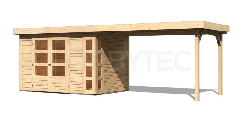 Tato verze domku obsahuje i přístavek délky 280 cm.