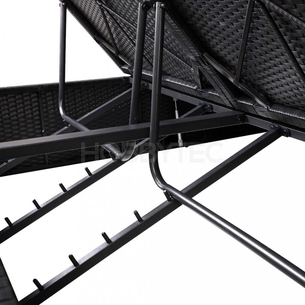 Lehátko lze nastavit do 4 různých výšek v oblasti hlavy a nohou pomocí stabilních dvojitých podpěr. Dvojité nosiče jsou navíc vybaveny plastovými chrániči.