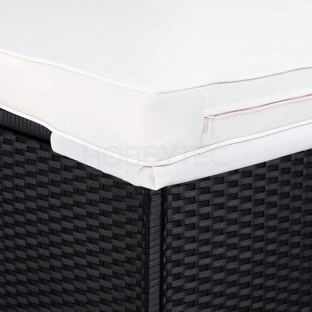 Moderní opalovací lehátko vyrobené z polyratanu je skvělý do interiéru i venkovních prostor.