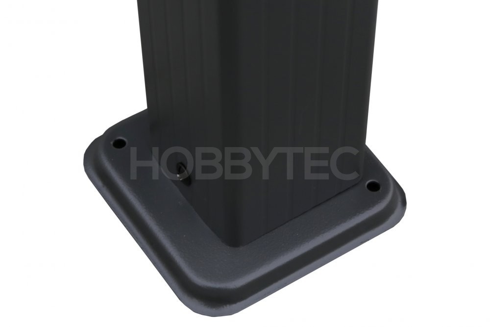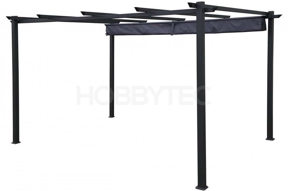 Pergola z hliníku s práškovým nástřikem je pevná, má nízkou hmotnost a je odolná vůči měnícím se povětrnostním podmínkám. Konstrukce je doplněna odolným materiálem tvořícím podhled z polyesteru s povlakem chránícím před UV zářením. Celé to má klasickou a univerzální tmavě šedou barvu, kterou snadno sladíte s mnoha fasádami budovy.