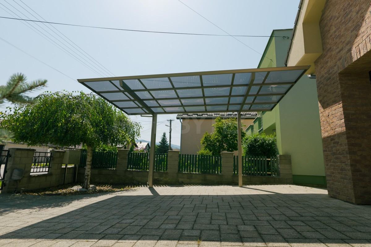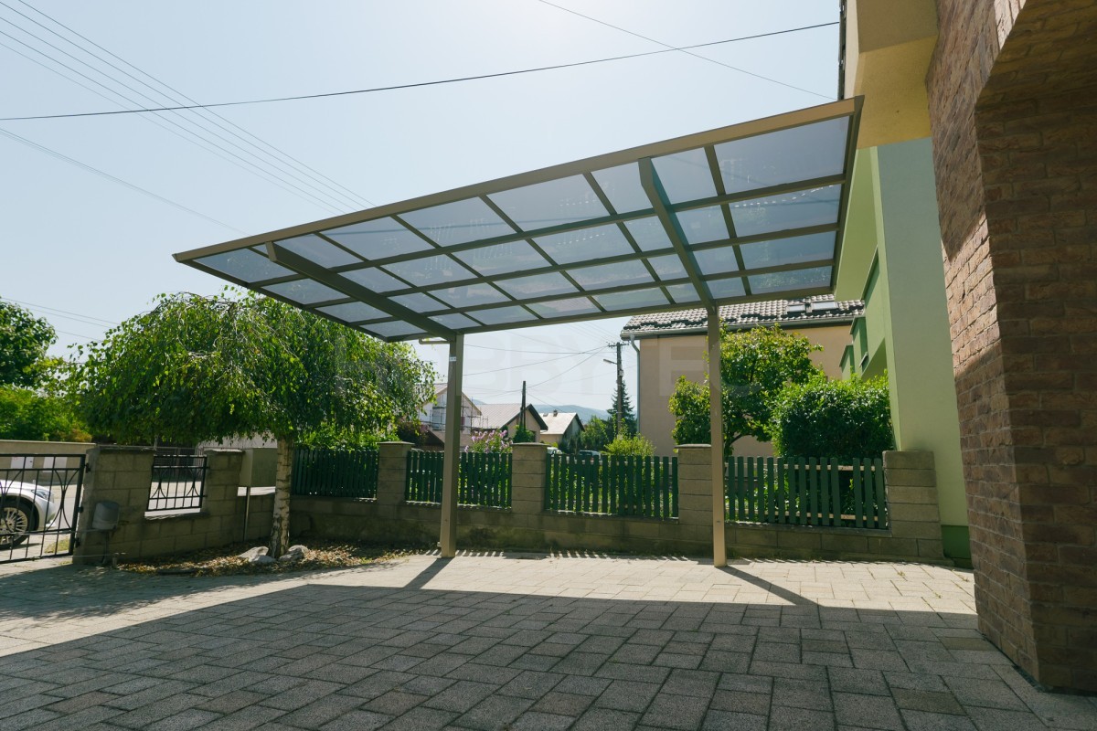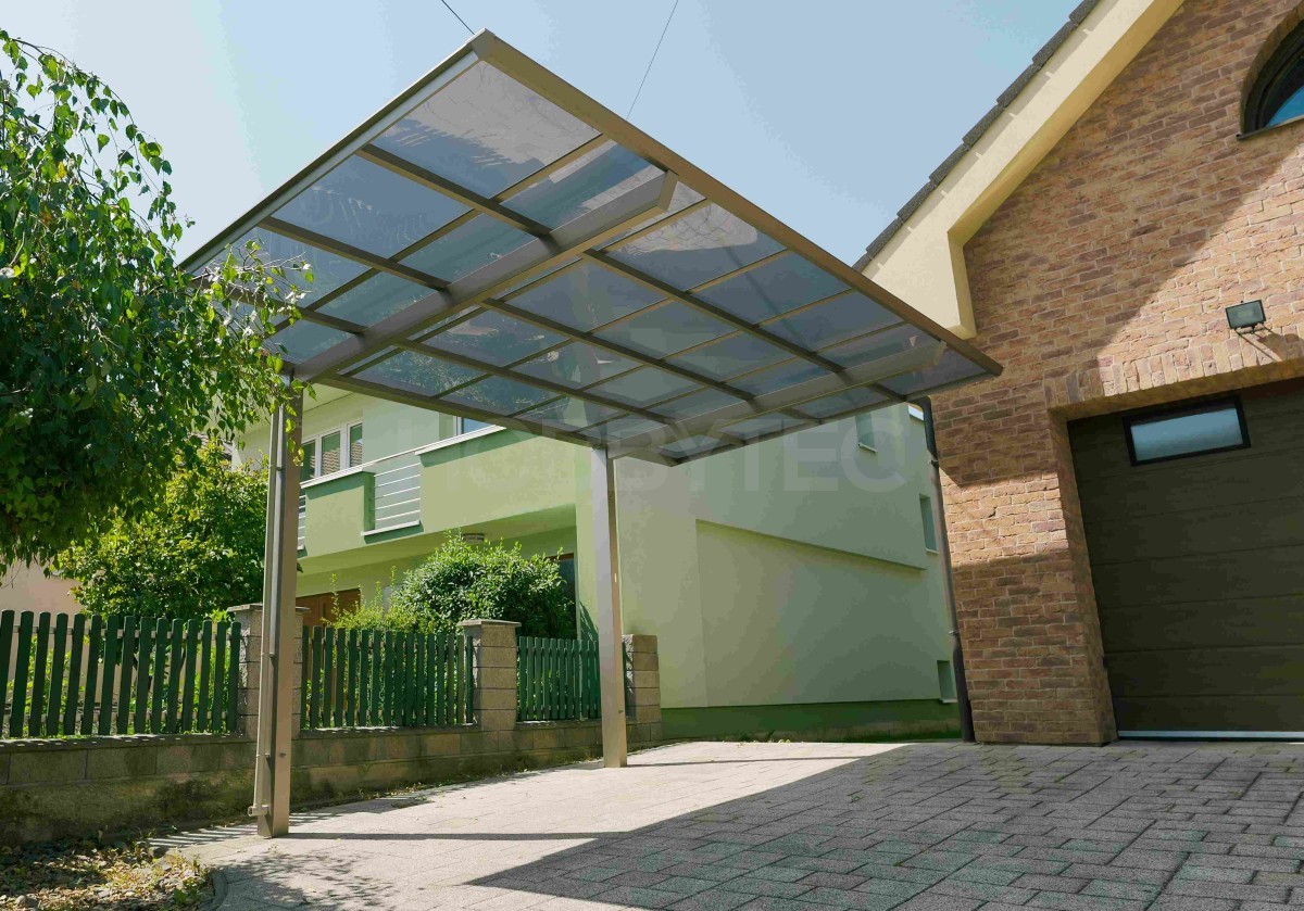 Zastřešení je z odolného polykarbonátu s UV filtrem účinně filtruje teplo a brání přímému kontaktu s nebezpečným UV zářením. Díky tomu se interiér vašeho auta za horkých dní nepřehřeje. Navíc je bráněno vyblednutí laku. Tento materiál je navíc vysoce odolný vůči nárazům a pádům.