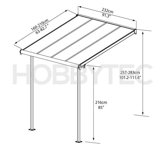 Přístřešek Palram má extrémně pevnou střechu ve zcela novém designu. Masivní konstrukce z eloxovaného hliníku z ocelového pozinkovaného spojovacího materiálu. Odolné vůči UV záření, poskytuje pohodlné sezení a příjemnou atmosféru.Snadná montáž prostřednictvím inovativního systému spojení desek a profilů. Včetně okapu, spojovacího materiálu pro montáž do stěny a podlahy. Poskytne příjemné zastínění. Díky použitým materiálům je pergola odolná vůči rzi, mechu a plísním. Pergola je dodáváná ve formě stavebnice a snadnou montáží vás provede krok po kroku jednoduchý a přehledný návod. Součástí balení je veškerý spojovací materiál i kotvící sada pro přikotvení k podlaze. Konstrukce je z eloxovaného hliníku, takže nevyžaduje na rozdíl od jiných materiálu žádnou údržbu.