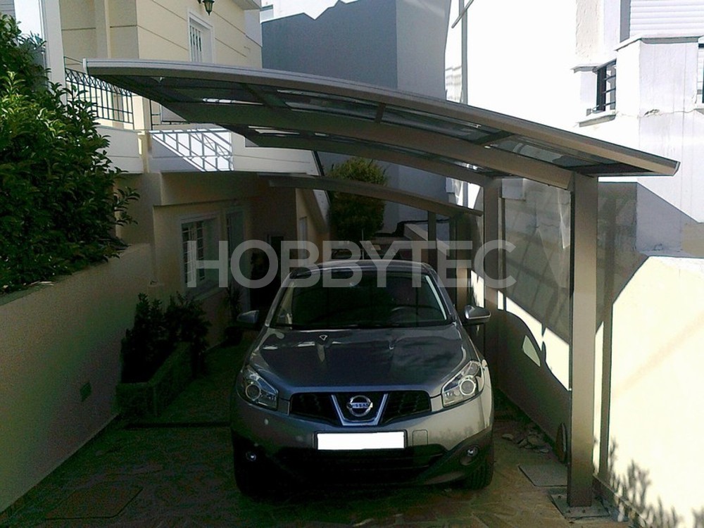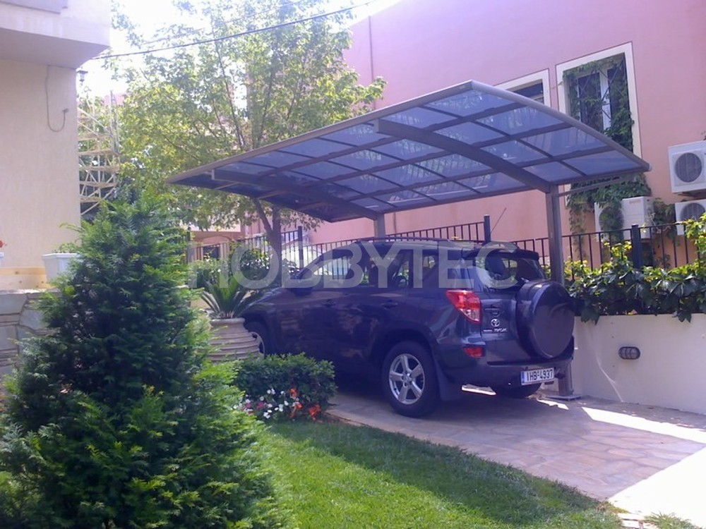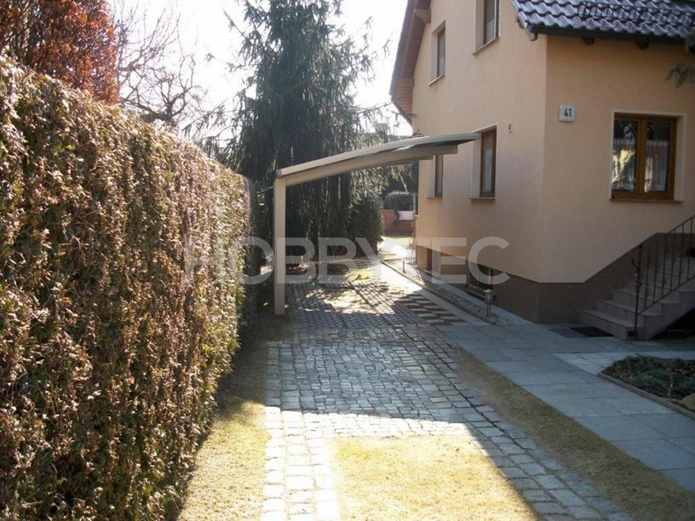 Hliníkový přístřešek pro auto v rozměry 5,7 m x 3 m. Přístřešek je samonosný a nepotřebuje kotvení do stavby. Konstrukce hlinikových přístřešků je z eloxovaného hliníku. Střešní krytina v podobě plného lexanu, který vypadá jako sklo. Střešní krytina má vynikající izolační vlastnosti, 100% UV (ochrana proti UVA) a 75% IR (ochrana proti UVB záření). Přístřešky jsou jako jediné v ČR certifikovány TÜV. Nejedná se o čínské kopie, ale o japonský originál se zárukou 10 let.