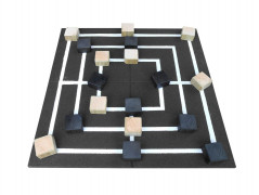Hra mlýn s figurami - Gumová dlažba v sadě pro vytvoření herního plánu pro společenskou hru "mlýn". Sada obsahuje dřevěné figury.