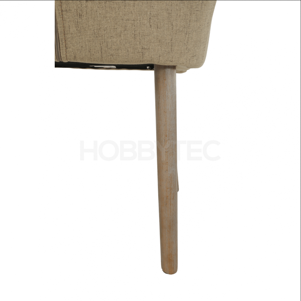 Jídelní křeslo je čalouněné látkou v několika barevných variantách. Stabilitu zajišťujiíčtyři dřevěné nohy v dekoru buk nebo buk patinovaný. Elegantní vzhled mu zajišťuje dekorativní prošívání zádové opěrky.