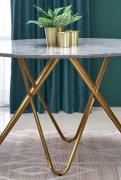 Stůl je vyrobený z laminované MDF v barevném provedení: šedý mramor. Designové nohy jsou z chromované oceli ve zlaté barvě.