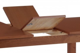 Moderní rozkládací jídelní stůl je vyroben z dřevěného masivu barvy moření ořech, buk nebo třešeň. Deska dýha, nohy - masiv.