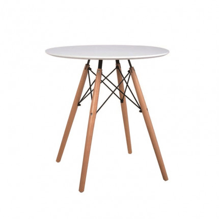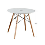 Stylový jídelní stůl GAMIN NEW se díky svému kulatému provedení hodí i do malých prostor. Vyroben je z kvalitního a odolného materiálu. Nohy jsou dřevěné v provedení buk, plát stolu je je vyrobý z MDF v barevném provedení: bílá.