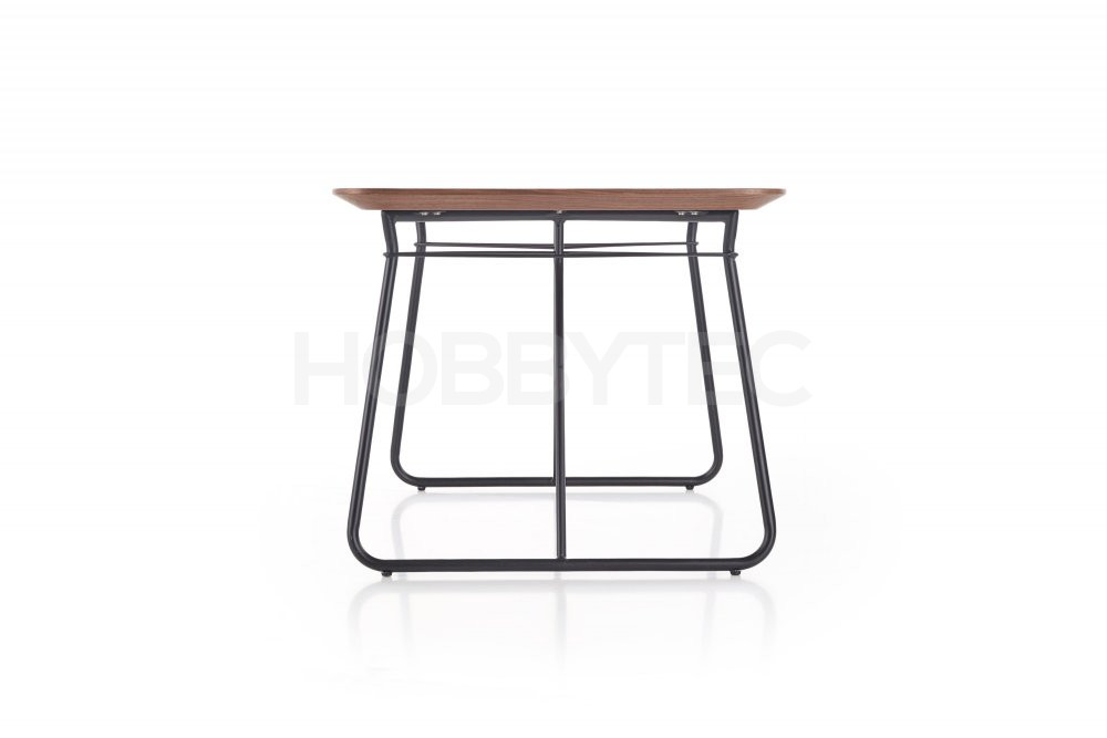 Jídelní stůl HOUSTON s černými kovovými nohami z práškově lakované ocele a stolovou deskou z dýhované MDF v barvě ořech.