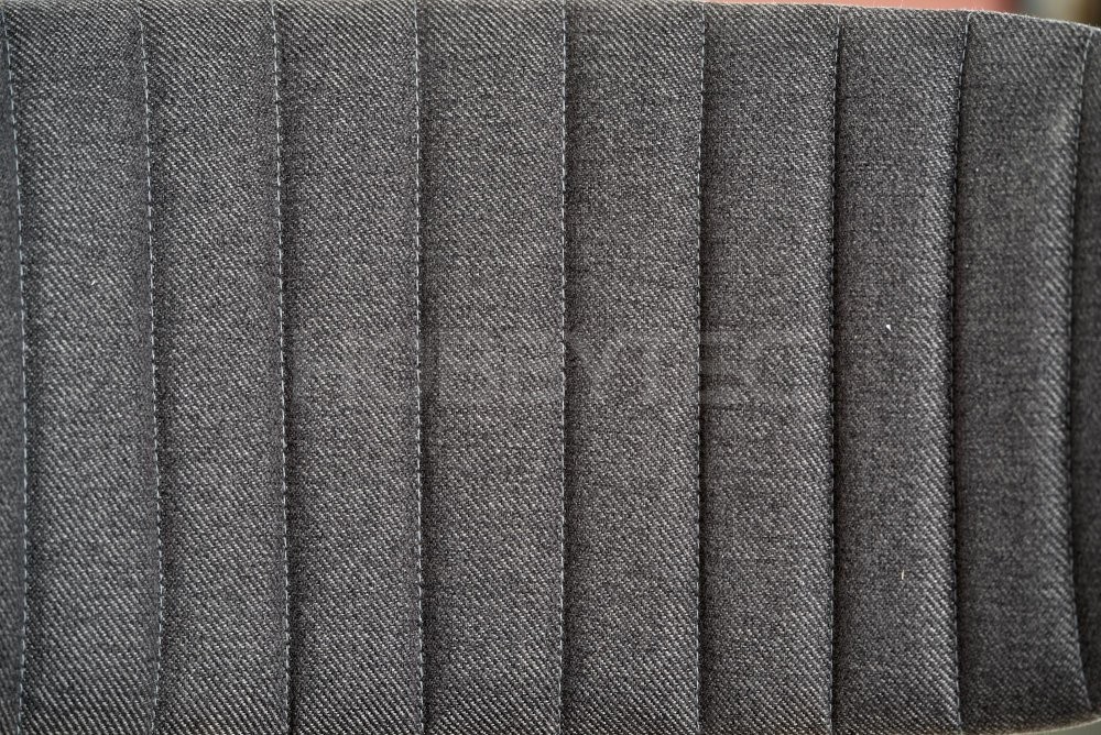 Je čalouněná odolnou látkou v tmavě šedé barvě. Na obrázku je židle zkombinována se stolem MANCHESTER.