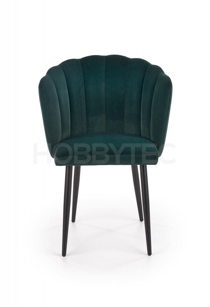 Jídelní židle K386 je vyrobena v kombinaci kovové podnože z práškově lakované ocele a čalouněná sametovou potahovou látkou.