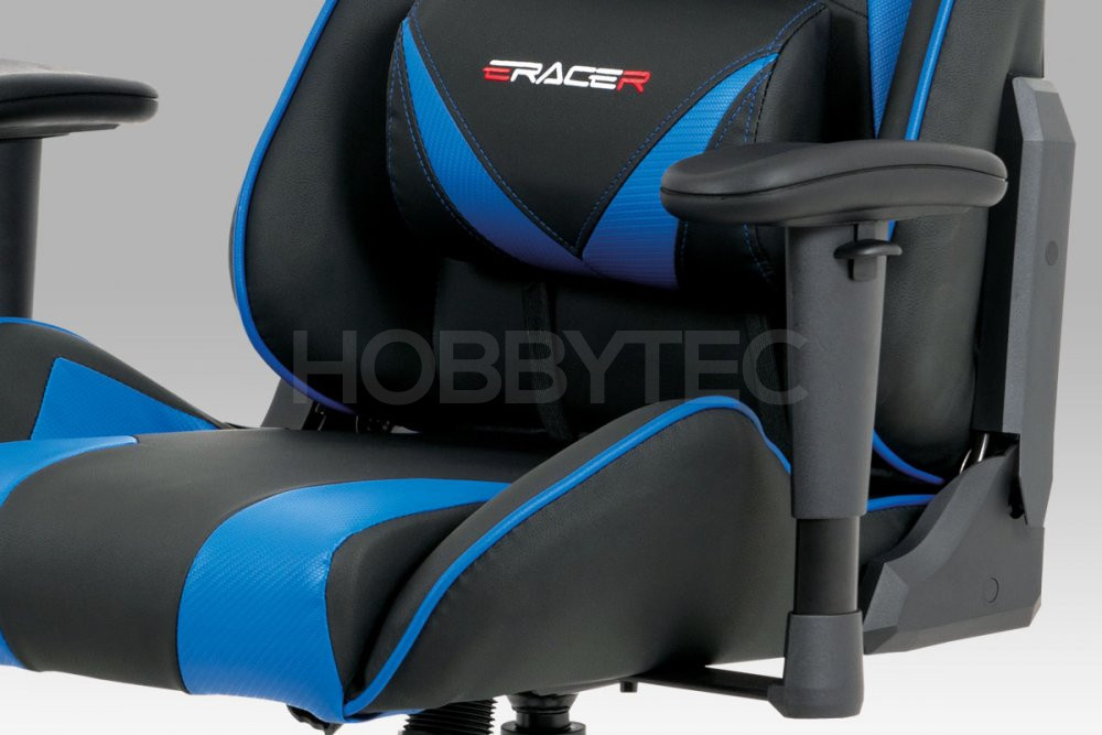 Kancelářská židle je čalouněná eko kůží ve třech barevných variantách: červená / černá, modrá / černá a černá, s detaily v dekoru "KARBON".