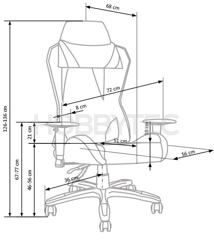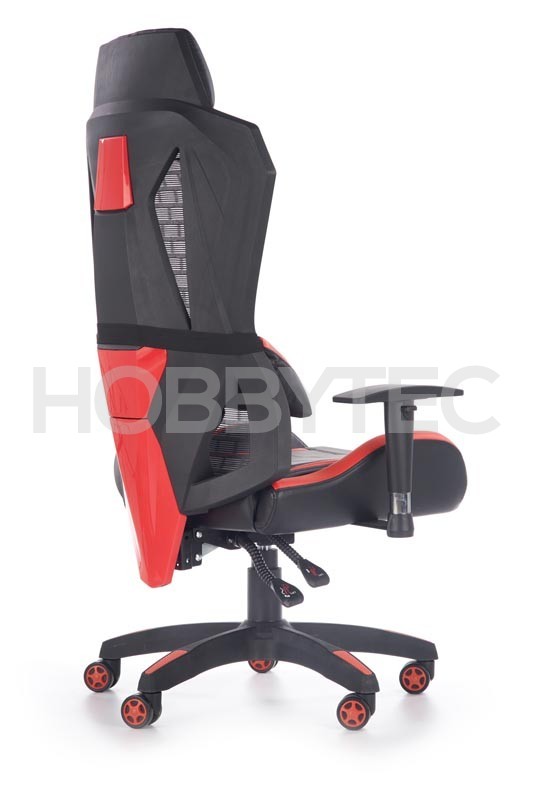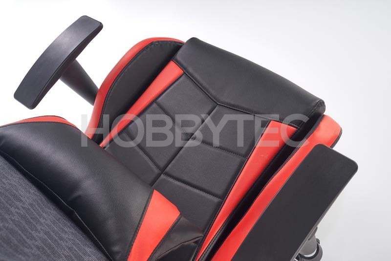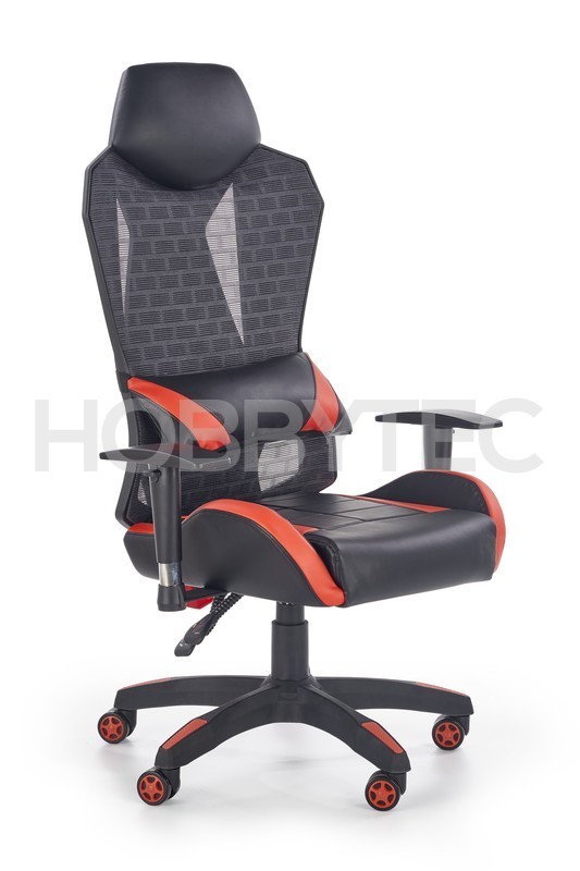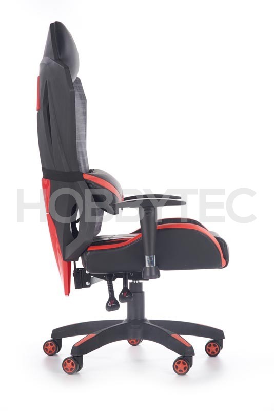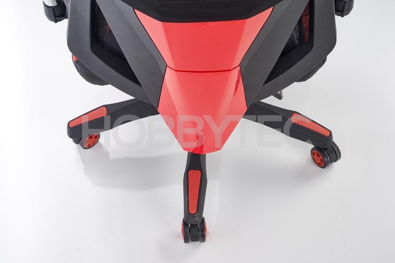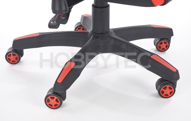 Skvělým pomocníkem jsou také praktické područky s výškovým nastavením. Křeslo je také vybaveno stabilní základnou s pěti kolečky. Černo červené provedení skvěle podtrhuje sportovní a zajímavý design křesla.