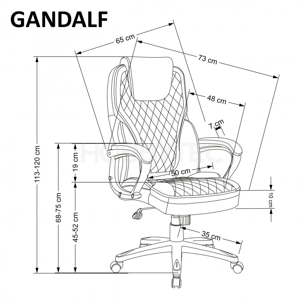 Moderní kancelářské křeslo GANDALF je čalouněno kombinací eko kůže a příjemné látky v neutrálním barevném provedení: černá / šedá. Díky použitým barvám se křeslo hodí do jakéhokoliv stylu pracovny. Stojí na černé plastové růžici zakončené plastovými kolečky.