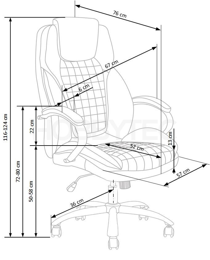 Dostatečně velký sedák a vysoký opěrák jsou potaženy kvalitní eko kůží v černé barvě. Křeslo je vybaveno mechanikou TILT, která umožňuje snadné nastavení výšky sedáku dle potřeb sedícího.