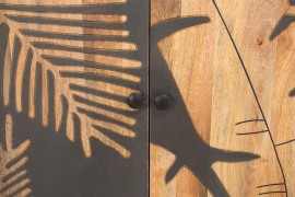 Komoda DAMASEN je z masivního mangovníkového dřeva a stojí na kovových nohách. Výrazným prvkem jsou barevně řešené dveře, kdy listy umožňují vyniknout přírodnímu dřevu.