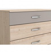 Moderní komoda GRAPHIC se čtyřmi zásuvkami, které poskytují dostatek úložného prostoru. Je vyrobená z foliované dřevotřísky v barevném provedení: dub arizona / šedá.