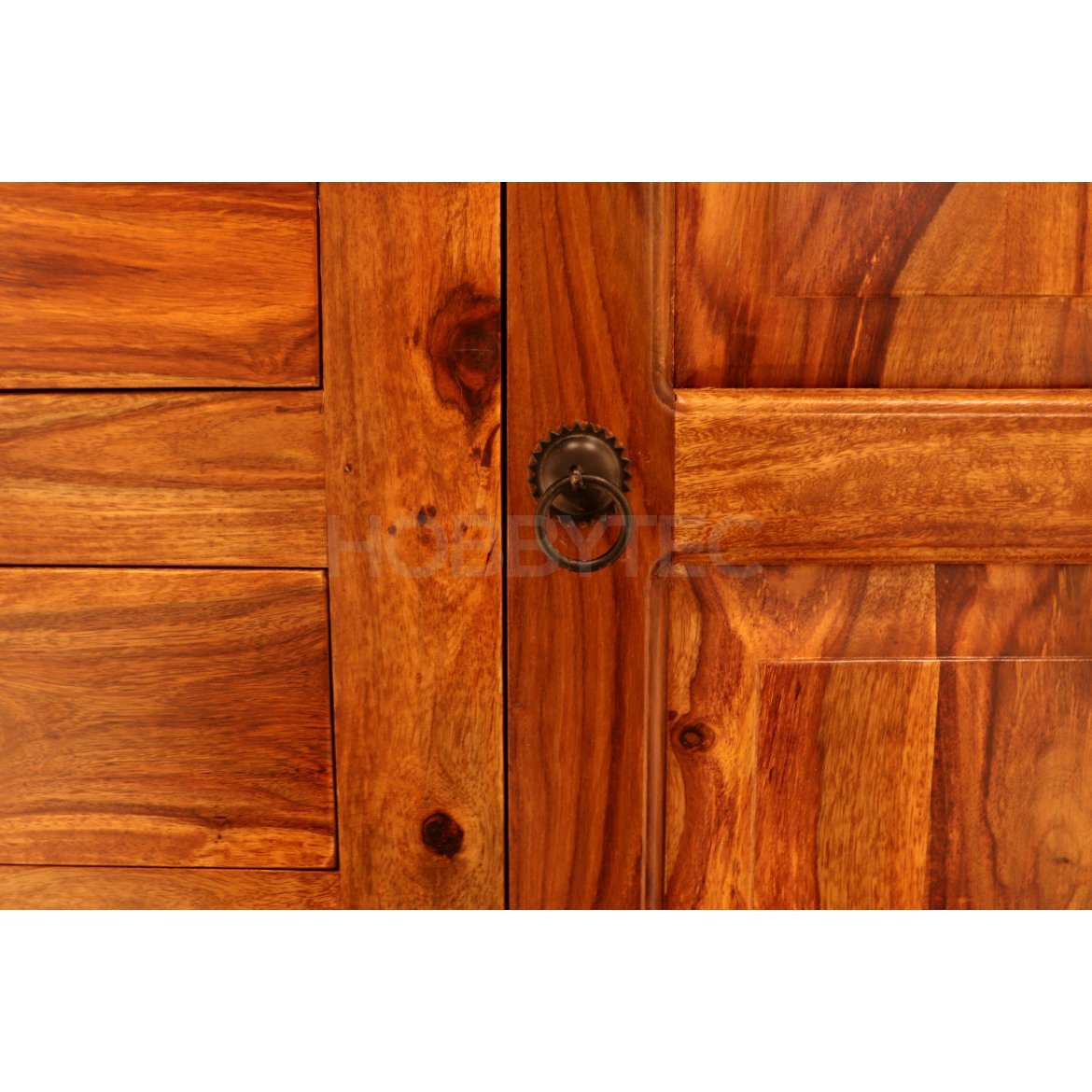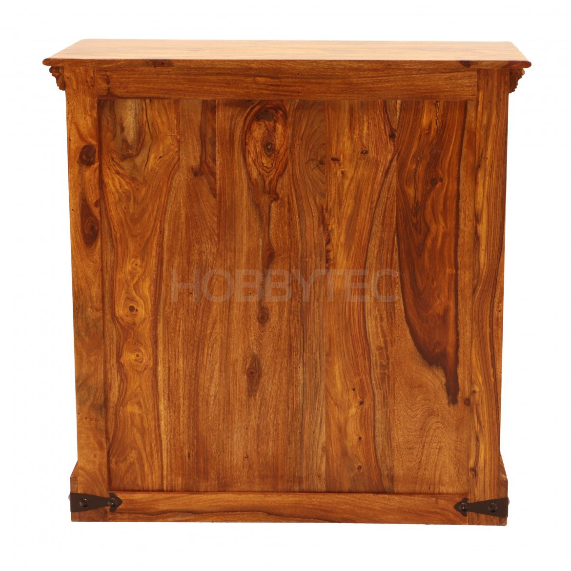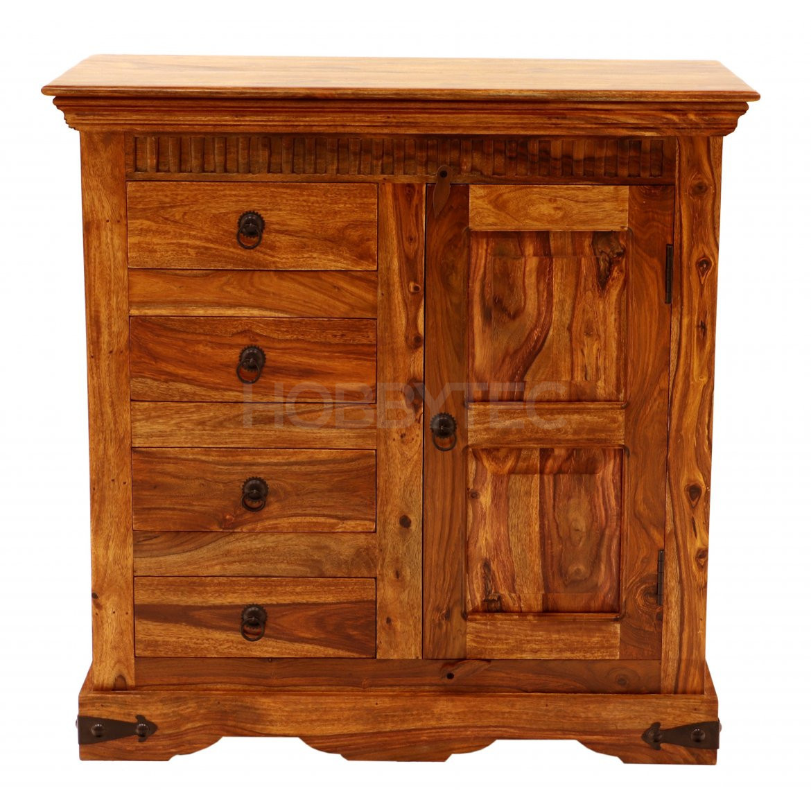 Komoda z masivu má 4 zásuvky a 1 vyřezávaná dvířka, úchyty kované. Vyrobena z indického palisandru. Komody z masivu, které máme skladem, si můžete prohlédnout v našem showroomu. Indický koloniální nábytek palisandr (sheesham) masiv.