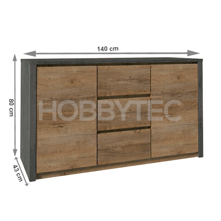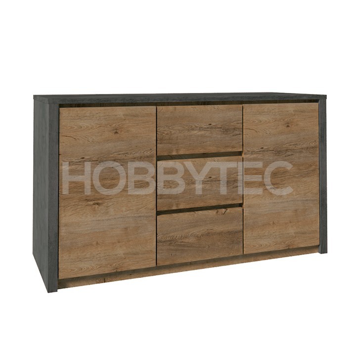 MONTANA K2DP je úchvatná komoda se dvěma skříňkami a třemi šuplíky uprostřed. Moderní design bez úchytek.