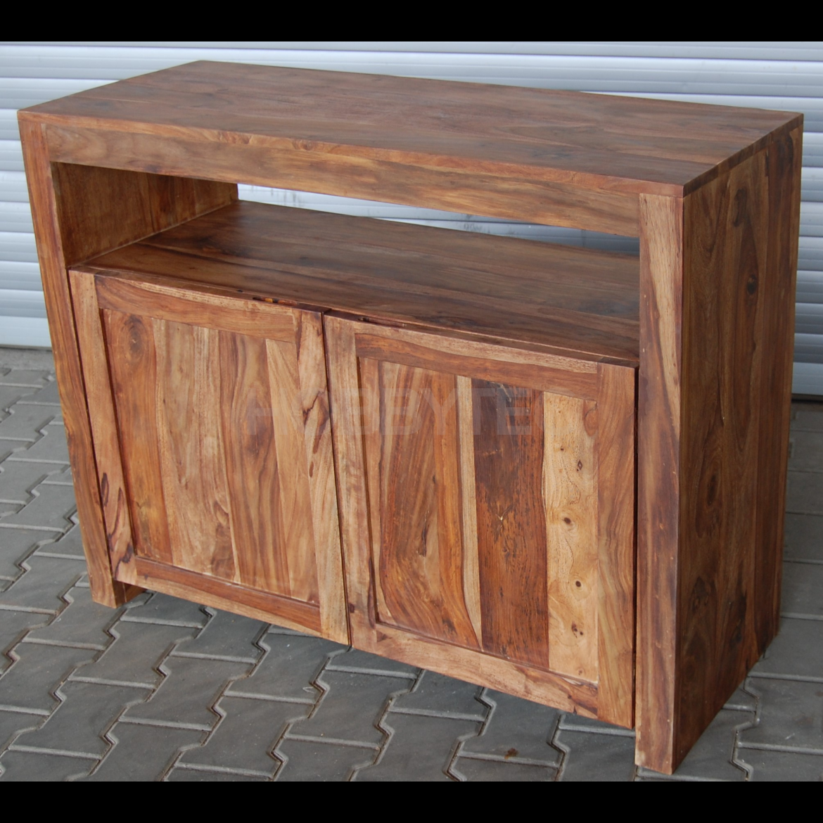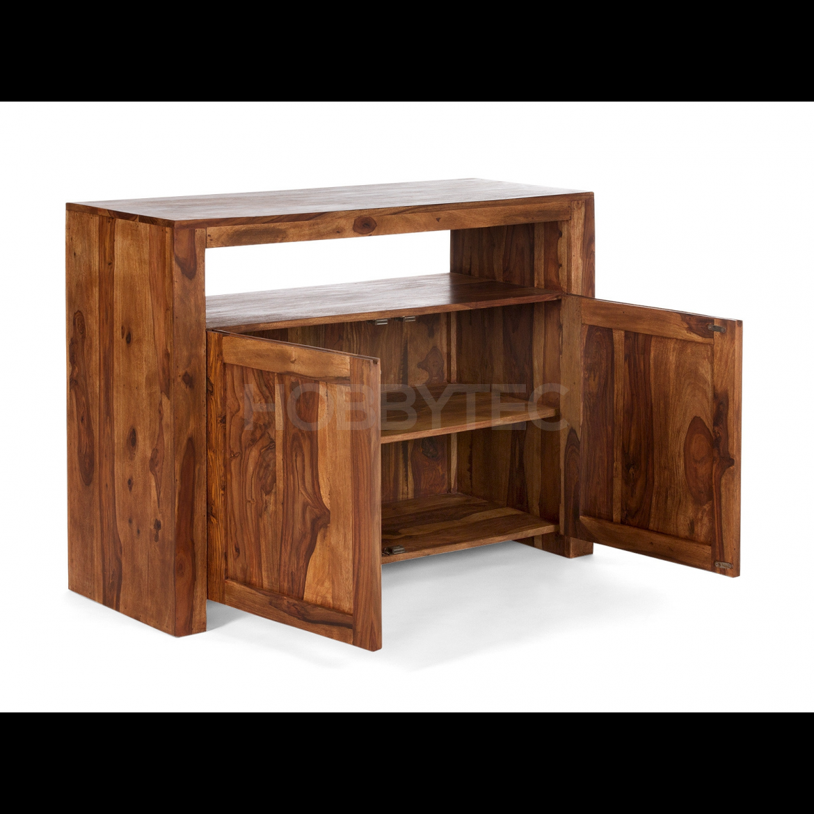 Komoda z masivu má dvě zásuvky a dvoje spodní dvířka. Vyrobena z indického palisandru. Komody z masivu které máme skladem si můžete prohlédnout v našem showroomu. Indický koloniální nábytek palisandr (sheesham) masiv.