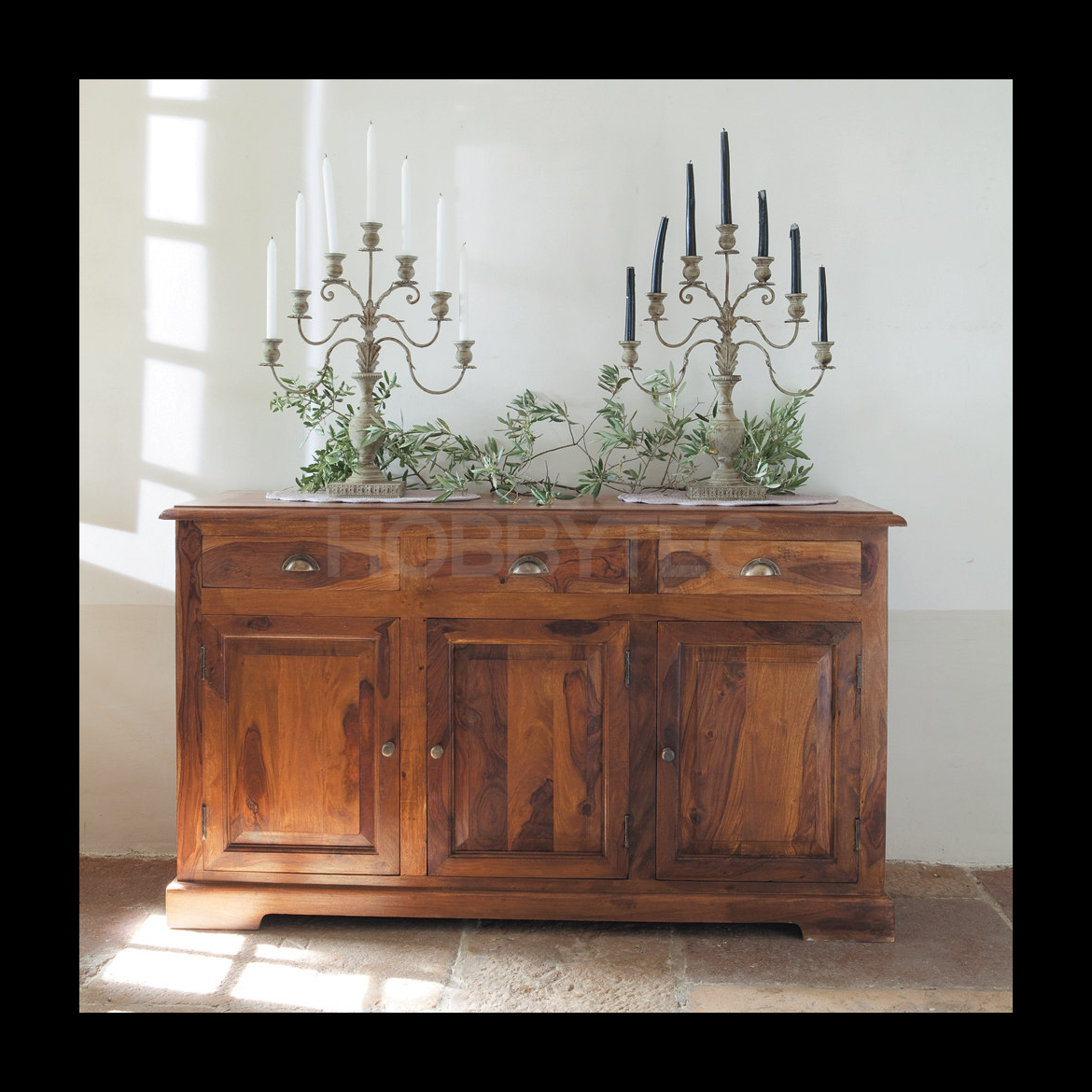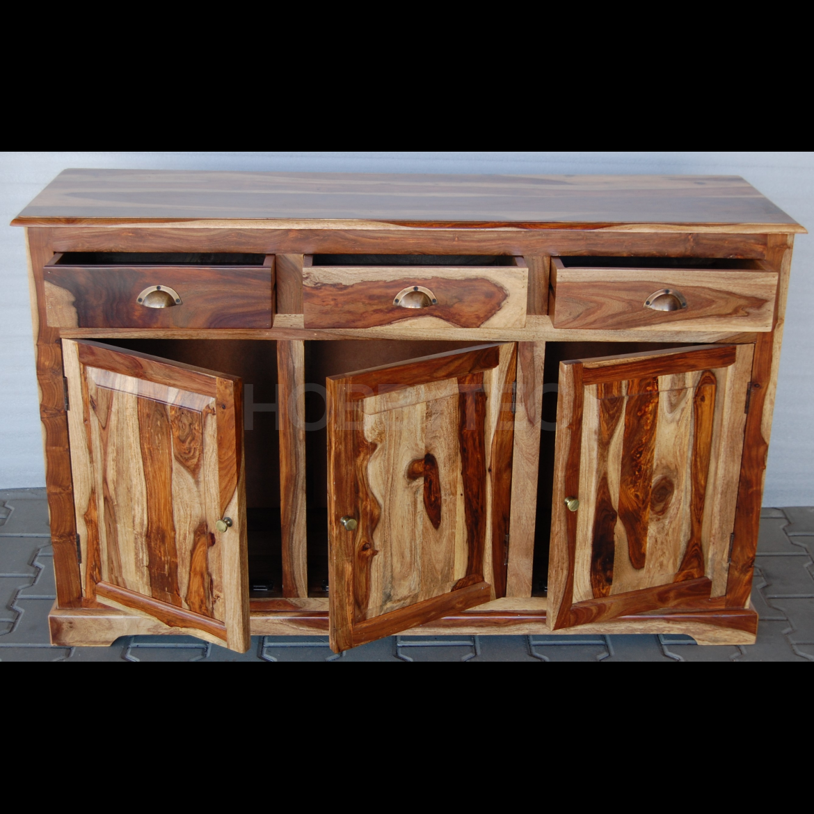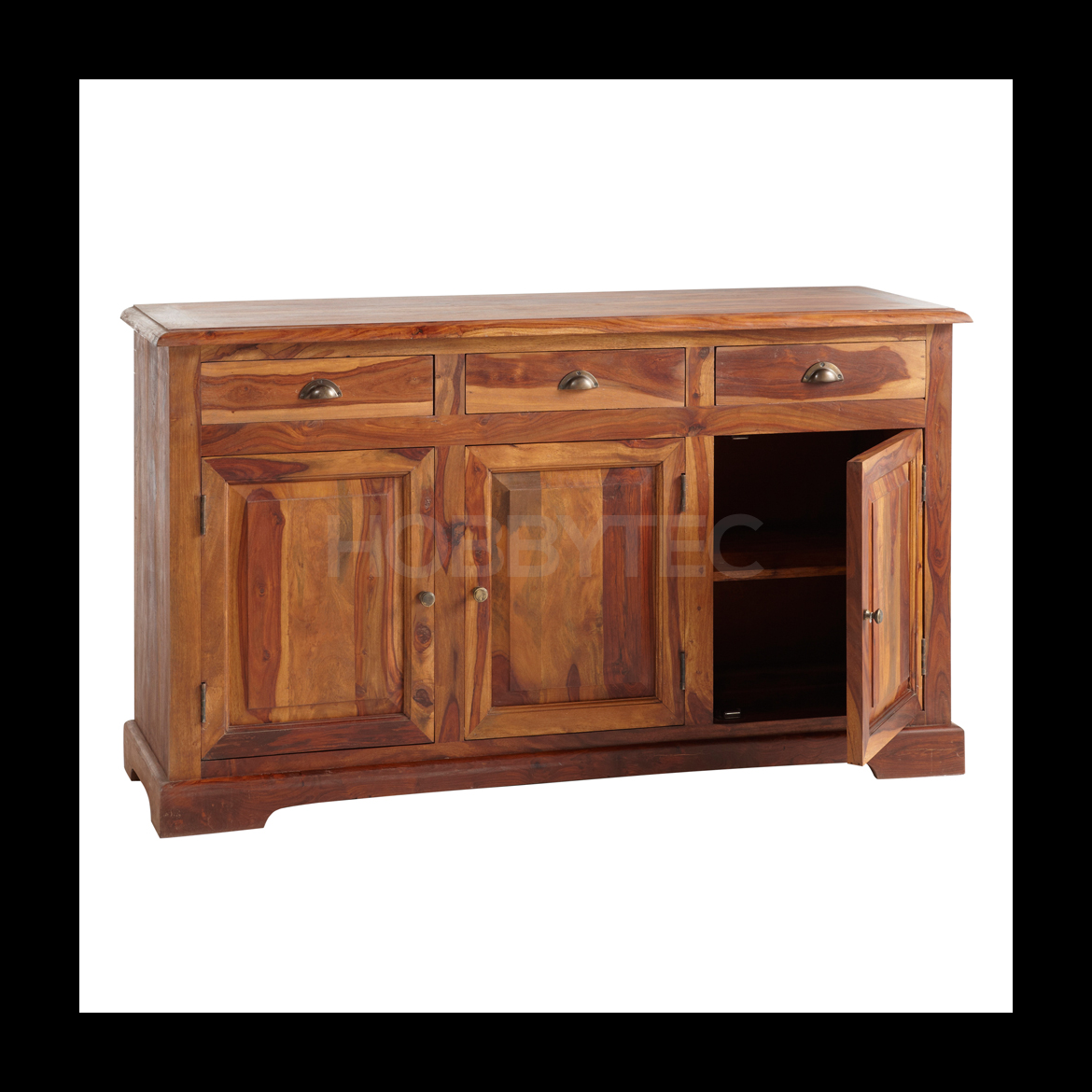 Komoda z masivu má tři zásuvky na hoře a troje spodní dvířka s kovovým úchytem. Vyrobena z indického palisandru. Komody z masivu, které máme skladem si můžete prohlédnout v našem showroomu. Indický koloniální nábytek palisandr (sheesham) masiv.