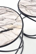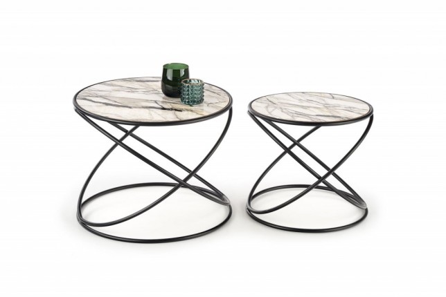 Konstrukce stolků je vyrobená z práškově lakované ocele v černé barvě. Desky jsou z kvalitní MDF v provedení: bílý mramor.
