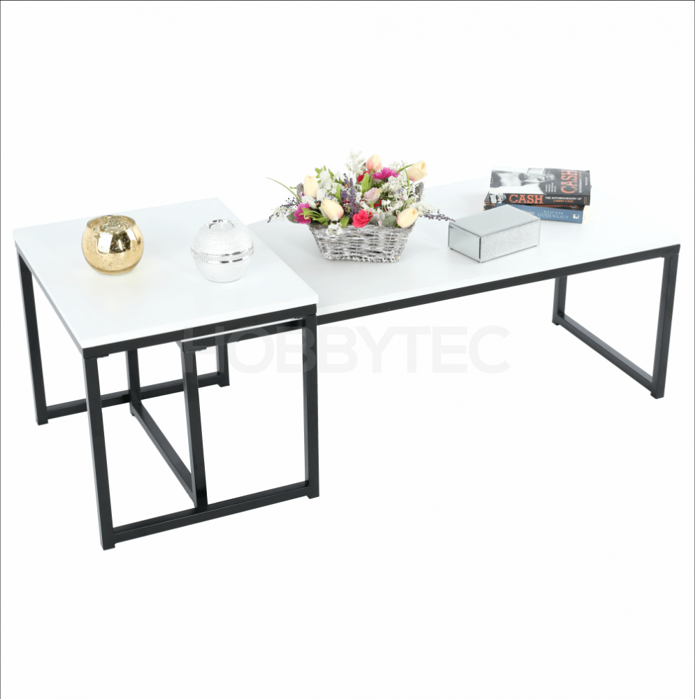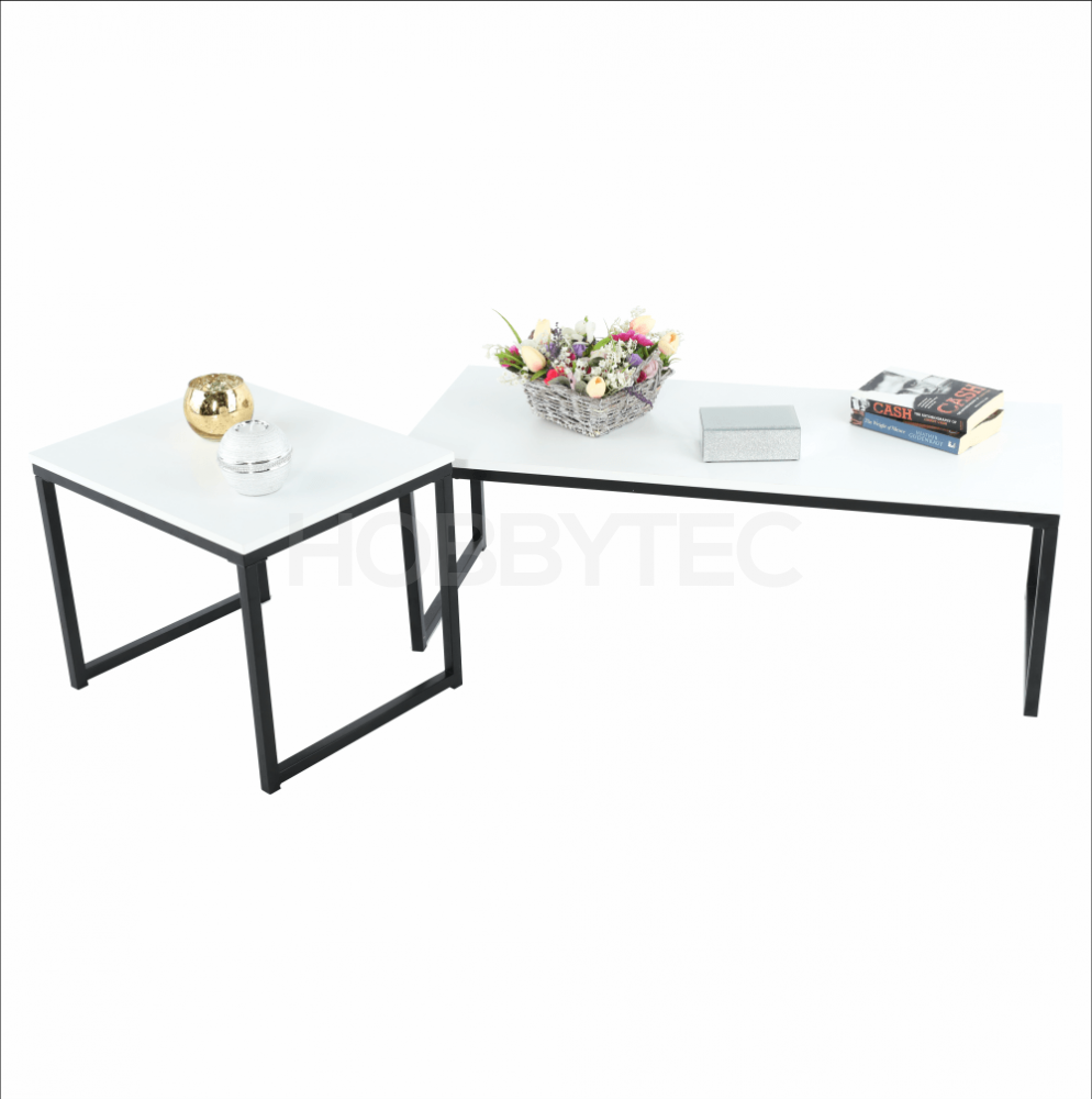 Stolky jsou vyrobené z laminované MDF v několika barevných variantách a rám stolků je z kovu v černé barvě.