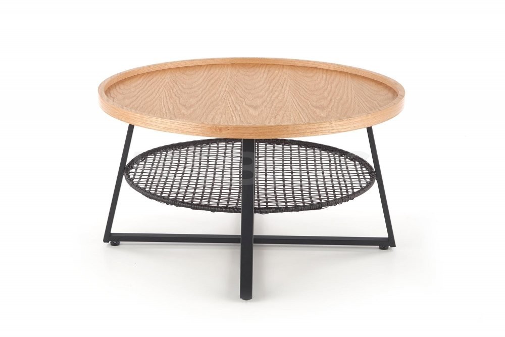 Stolek je vyrobený z laminované MDF v dekoru: dub přírodní. Stojí na čtyřech ocelových nohách lakovaných černou barvou.