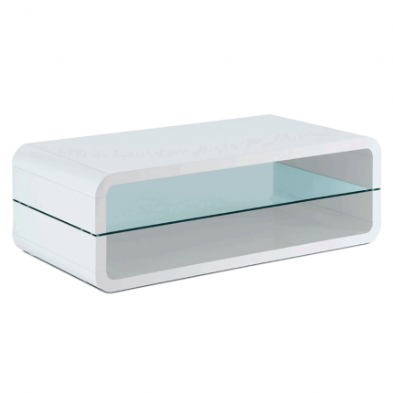 Je vyroben z kvalitní MDF v příjemné bílé barvě s extra vysokým leskem high gloss. MDF je spojena s čirým sklem, úžasná kombinace, která vám vyrazí dech. Čiré sklo o tloušťce 8 mm tvoří polici, na kterou si můžete odložit časopis, dálkový ovladač nebo mobil.