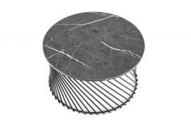 Stolek je vyrobený v kombinaci skla a práškově lakované ocele v barevném provedení: šedý mramor / černá.