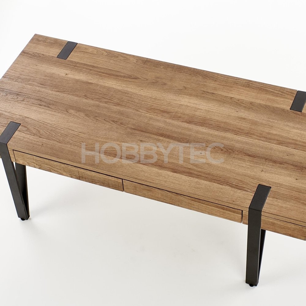 Konferenční stolek TULUZA je vyroben z dýhované MDF v barvě ořech medový a práškově lakované ocele. Stolek má dva šuplíky schované pod deskou.