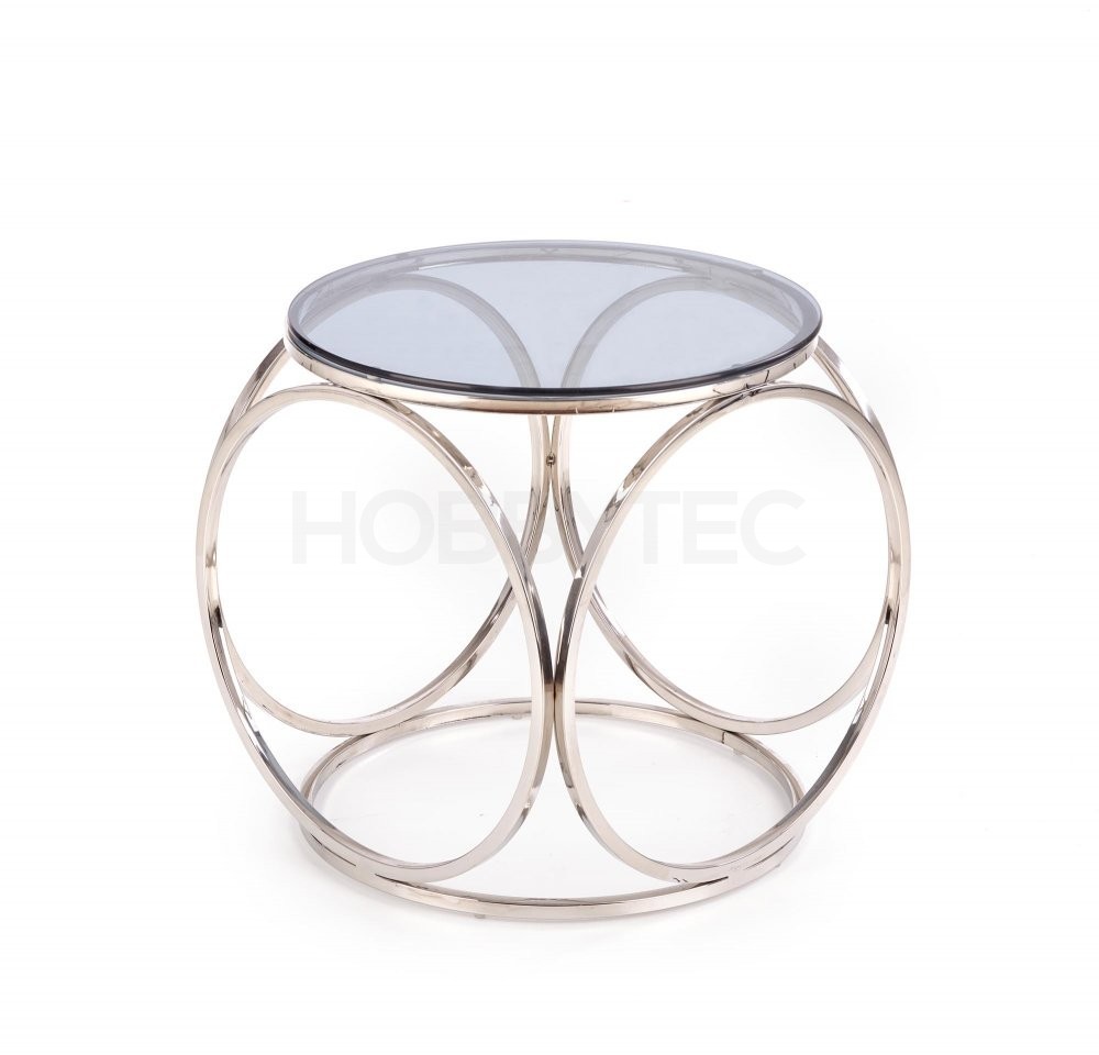Je vyroben z chromované oceli a deska stolu je vyrobena z tónovaného skla.