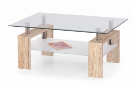 Stůl je složen z horní desky z tvrzeného čirého skla, ze spodní odkládací desky z mléčného skla.