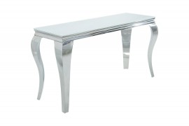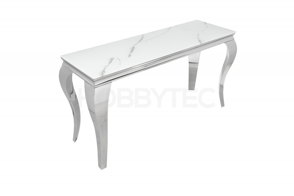 Jeho design je definován elegantně zakřivenými nohami stolu v kombinaci se skleněnou deskou stolu ve vzhledu mramoru.