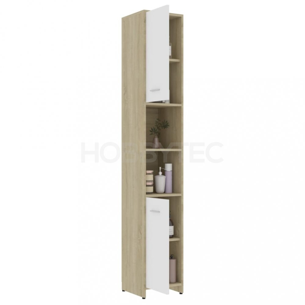 Stylová skříňka je vyrobená z dřevotřísky, takže je pevná a stabilní. Obsahuje 6 přihrádek a 2 dvířka, nabízí tedy celou řadu úložných možností a dodatečné místo, kam uklidit vaše koupelnové potřeby. Úchytky na dvířkách napomáhají snadnějšímu otevírání a zavírání. Skříňku jednoduše očistíte navlhčeným hadříkem.