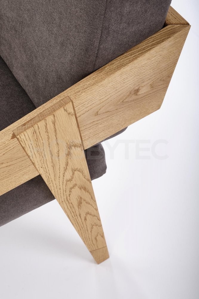 Konstrukce křesla je vyrobená z masivního dubového dřeva, které se hodí do všech stylů interiérů. Do dřevěné konstrukce je zasazen silný sedák a opěradlo, které křeslu dodávají komfortní posezní.