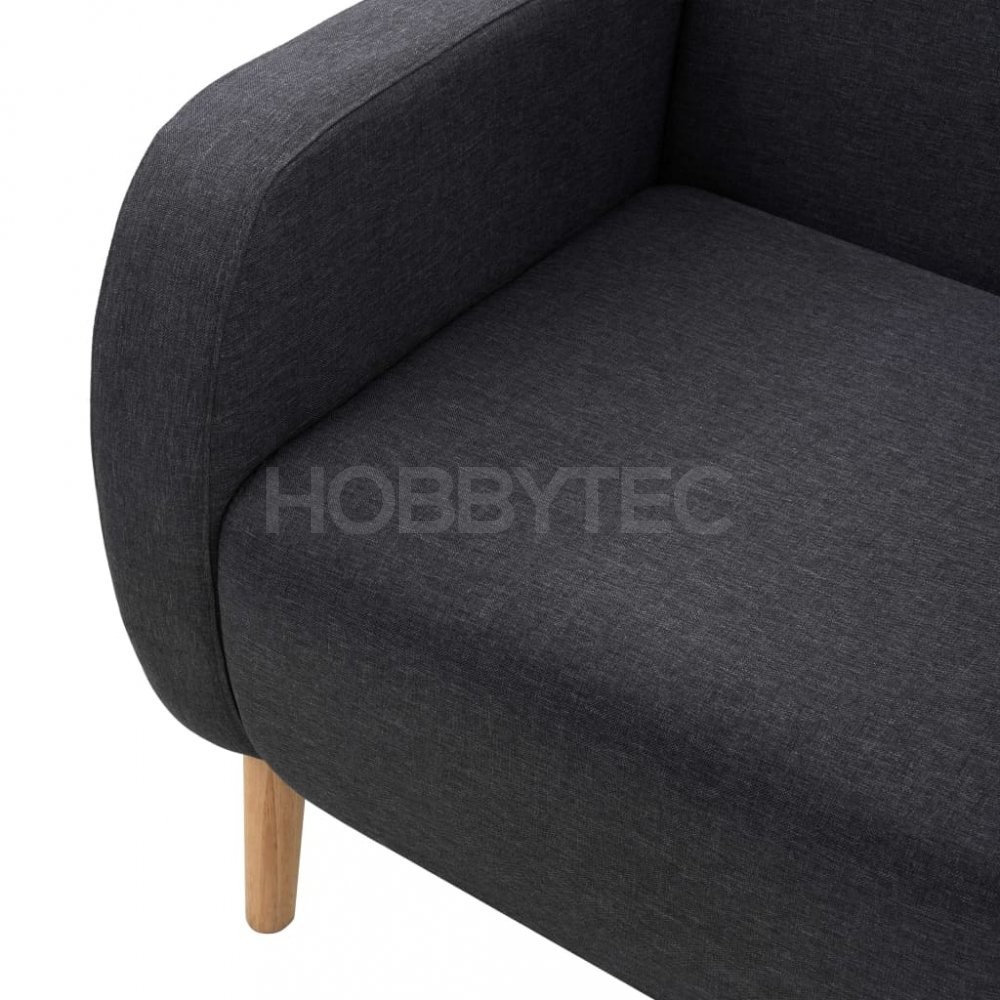 Křeslo je čalouněné měkkou látkou a polstrované pěnou pro větší pohodlí. Masivní dřevěný rám křesla je stabilní a odolný.