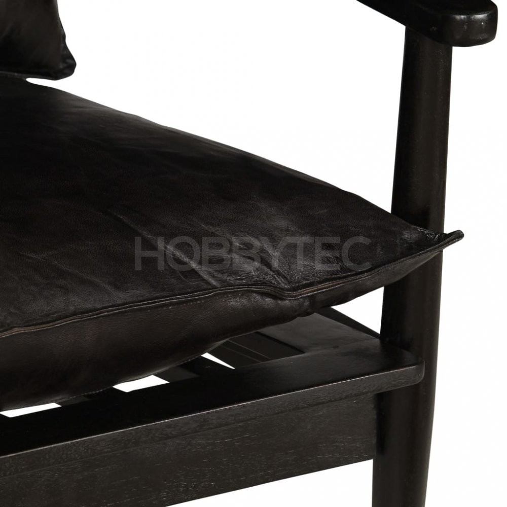 Křeslo je vyrobeno z masivního akáciového dřeva, které bylo vyleštěno, natřeno a nalakováno. Sheeshamová povrchová úprava mu propůjčuje rafinovaný vzhled. Ruční výroba a nádherná kresba dřeva jsou zárukou, že je každý kus jedinečný a lehce odlišný od ostatních. Křeslo je čalouněné měkkou kozí kůží a polstrované silnou pěnou, aby se vám na něm báječně a pohodlně sedělo.