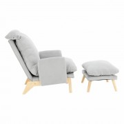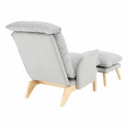 Křeslo s podnožkou ZANDER má masivní dřevěné nohy a čalouněné kvalitní mentolovou látkou nebo světle šedou látkou v jemných odstínech.