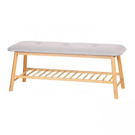 Lavice LAVIDA TYP 3 navodí příjemnou atmosféru. Rám je vyroben z lakovaného bambusu, sedací část je čalouněná šedou látkou. Lavice poskytuje úložný prostor ve spodní části, kam můžete odložit např. své boty a udržet tak v předsíni pořádek. Lavice je vhodná také do kuchyně či obývacího pokoje zařízené ve venkovském stylu. Lavici LAVIDA nabízíme ve 3 různých velikostech.