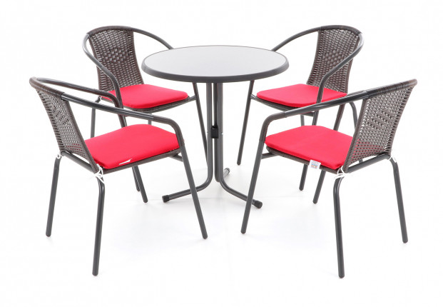 Terasový set KARO 4 se skládá z pohodlných stohovatelných křesel . Materiál ocel se speciální NANO technologií povrchové úpravy pro venkovní použití. Výplet je umělého ratanu s UV filtem .
